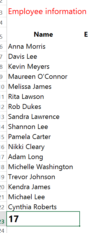An example of CountA could be when you require the total number of Staff in a list. You can see this in the practice example below.