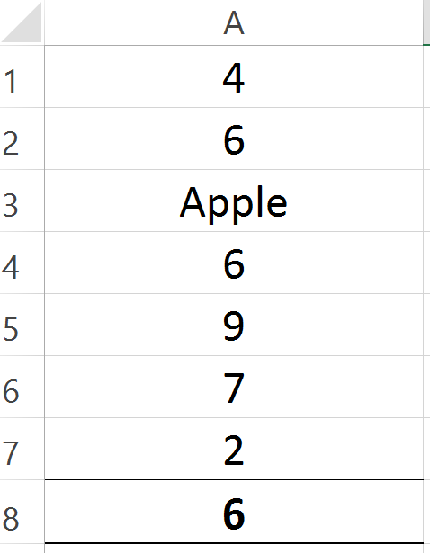 The result is 6, because Count has a limitation. Count only returns the number of values present, it doesn’t include text.