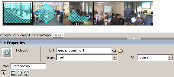 3) On the properties panel, select which shape hot spot you want (rectangle, circle, or oblong)